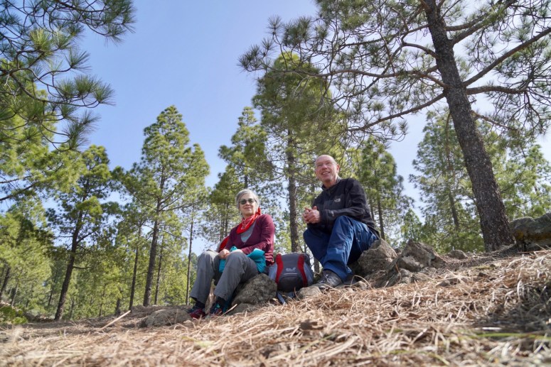 Finalmente arriviamo al mirador Degollada de Becerra e ci avviamo. Scegliamo il percorso che resta in quota e attraversiamo dei bei boschi di pini dai lunghi aghi. Molti i fiori e le piante esotiche.