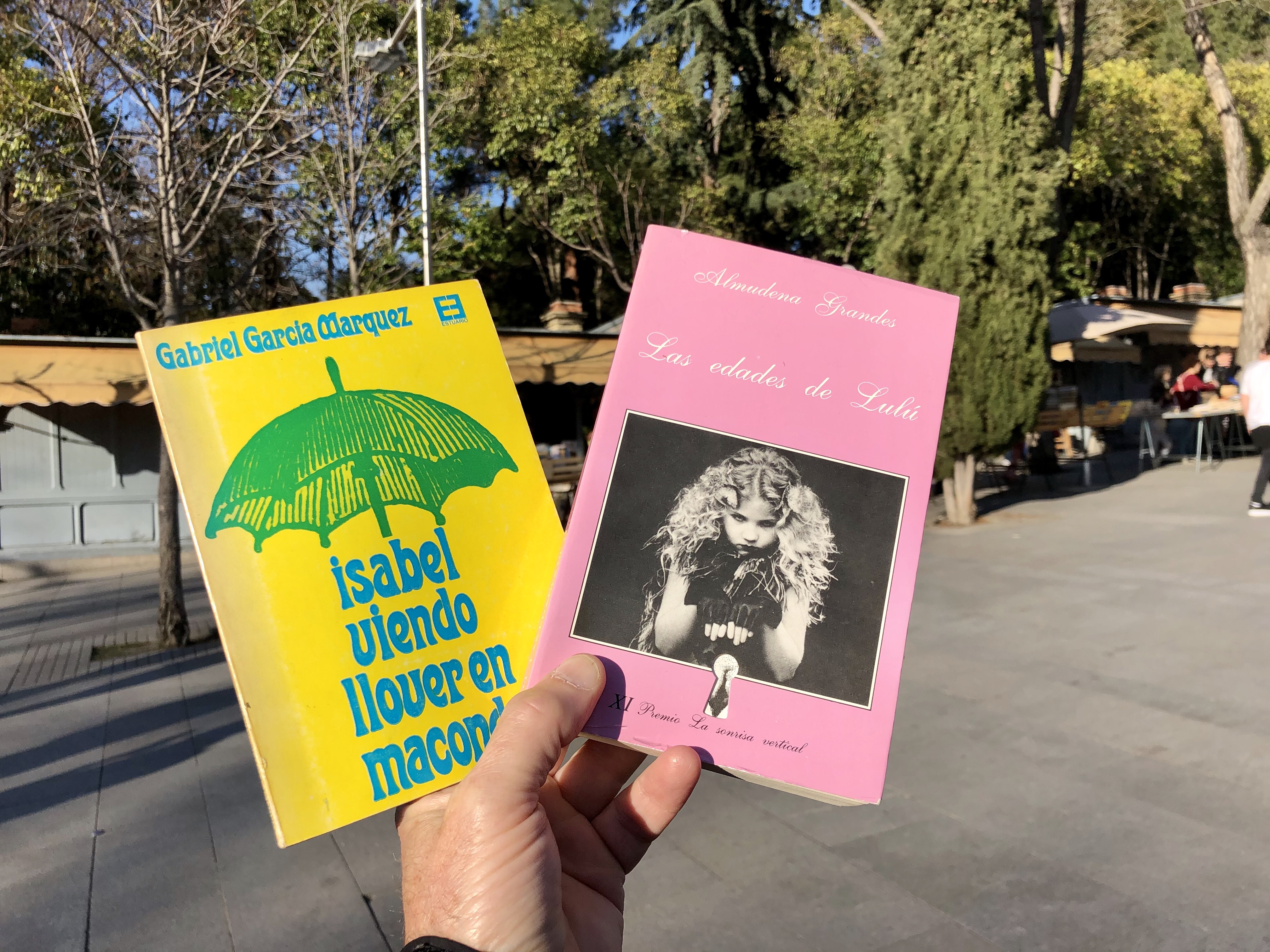 Poi, un bel momento rilassante al mercatino del libro usato. Compro due libri. Isabel viendo llover en Macondo di Marquez e Las edades de Lulú di Almudena Grandes. Mi viene in mente Umberto Eco quando, all’inizio del Nome della Rosa parla di una trouvaille ad uno stand del libro usato a Praga (se non ricordo male). Occasione per un nuovo – anzi due nuovi viaggi interiori.